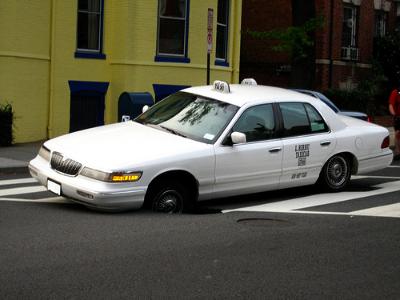 Photo of a cab stuck in a sinkhole from over the summer by randomduck
