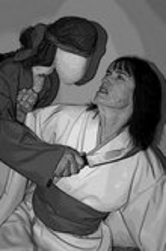 Image of actor Marynell Hinton trying to fend off an attacker — or is she? — in Meat and Potato’s adaptation of Rashomon.