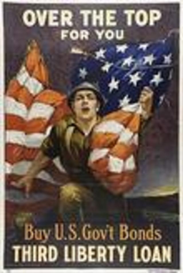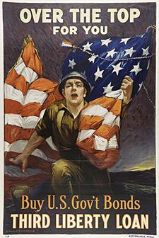 These days, we are not used to seeing reminders of war in our everyday lives. With a new exhibit that opened this weekend, the Smithsonian American Art Museum takes us back to a time when it would have been hard to forget, even for a moment, that we had soldiers dying overseas. Over the Top is a collection of American posters created during World War I to advertise so-called Liberty Bonds. It is an intriguing exhibit showing the fusion of art and politics in an era when people could not be disassociated from the actions of their government, and when something called a “home front” actually existed.