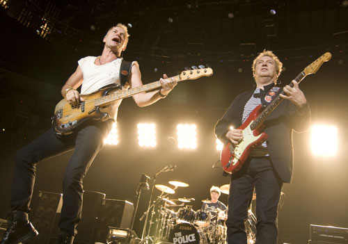 The Police made their way back to the District last night, playing their first show in town in over 24 years. Their last D.C. show was on August 22, 1983, when they graced the stage at the Capital Center. The crowd at the Phone Booth welcomed Sting, Andy Summers and Stewart Copeland with a huge ovation when Summers strode on stage and began the riff for “Message In A Bottle.” Were you in attendance last night? How would you rate the show?