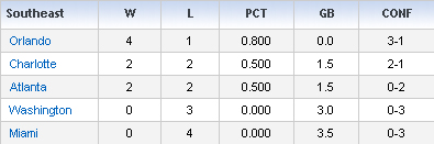 The Big Three are each struggling in their own way. Antawn Jamison is shooting under 30% from the field, Caron Butler is averaging 5.6 turnovers per game and Gilbert Arenas is 1-17 from behind the three point stripe. Things are so bad that everyone’s favorite whipping boy, Brenda Brendan Haywood has been the lone bright spot, putting up double-double numbers in the first three games. He’s also tied for sixth in the league in rebounding going into Wednesday night’s action.