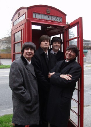 The band consists of look/sound-alikes Steve Landes (John), Joey Curatolo (Paul), Joe Bithorn (George), Ralph Castelli (Ringo), and Mark Lewis (backline keyboard). Complete with costume changes to reflect the different periods of the Beatles, the band plays note-for-note reproductions of the recordings. Along with the music, the show features screens showing projections of Rain’s members re-enacting classic Beatles clips, photo montages, and period footage during the set changes. The latter proved to be the most amusing and featured vintage clips such as a classic Winston cigarette commercial starring The Flintstones.