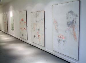 He makes his own tempera paint, and his work contains a sheen due to the eggs. His palette is also simple and does not stray from black, white, red and sometimes blue. Drawings are made from pencil and charcoal and he smudges the charcoal to dampen the image, softening it and then layering it with tempura washes.