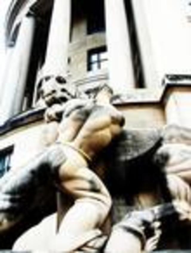 DC Cowgirl’s photo of one of the statues outside of the Federal Trade Commission headquarters at 6th and Pennsylvania NW is an interesting look at one of my favorites among Washington’s statuary. There are several reasons I like the statue, but most of them boil down to “that guy is hot.” I also like how the horse looks so pissed off; the sculptor did a great job with the animal’s expression. It’s particularly compelling because the statue is so unique for D.C. It’s rare to see such a communist aesthetic in these parts, and it’s striking to find it on a federal building given our history with the Reds. It looks like someone needs to clean it though, huh? EXIF.