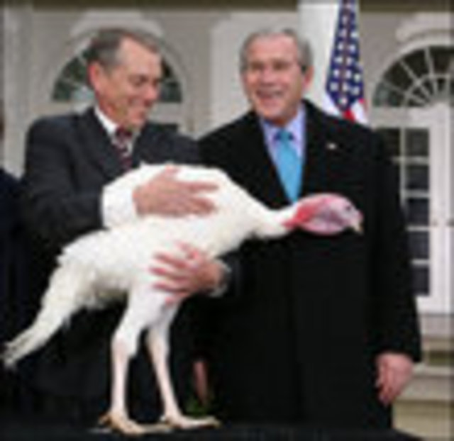 Maybe we’re cheeseballs, but we love the Annual Turkey Ceremony, the moment when the president “pardons” a lucky turkey (plus an alternate) who then becomes the official National Thanksgiving Turkey and gets to spend the rest of its days on some farm at Disneyworld or something like that. Sure, it’s capricious and cutesy, but who cares! Turkeys are funny looking, and presidents posing with turkeys are even funnier.
