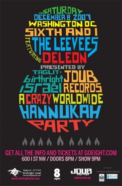 Have you followed Eddie Argos’ instructions and formed a band? Have you been looking, but just not finding, the perfect way to celebrate Hannukah this year? Are you free on December 8? The Eight, a concert presented by JDub Records, and Taglit-birthright Israel, is a worldwide Hannukah party happening simultaneously in 9 cities: D.C., New York, Los Angeles, Boston, San Francisco, Tel Aviv, Rio and Moscow. JDub, home to bands such as Balkan Beat Box, Golem, and SoCalled, is looking for a local band to open this year’s show, which takes place on December 8 at the historic 6th and I Synagogue and features The LeeVees and Deleon. Submission instructions from the JDub website are as follows: