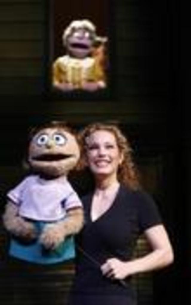 Adults operate the puppets which appear on stage, and play separate characters who interact with them as well. Each performer does a nice job invoking the spirit of his or her handheld counterpart without distracting from the puppet itself. We soon focus on the little creatures as the real characters (and the show has some neat staging devices to throw in the mix, such as a giant looming puppet threatening to bring the Avenue Q apartment complex down).