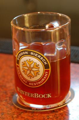 If your tastes are tending more to the Belgian side of things, the bar at Brasserie Beck has St. Feuillien’s Cuvée de Noël on tap, and an additional 15 winter seasonals by the bottle (if they still have any of the De La Senne Equinox, go for it: it’s a silky smooth dark amber that hides the fact it’s 8% alcohol by volume very well). The Belgians tend to spice their winter seasonals more moderately than the Americans do, perhaps because normal Belgian ales have a higher incidence of spice use. Americans don’t drink a lot of spiced beer in general, so when American brewers spice them, they go all out. One notable exception to this immoderate spice use in the D.C. area is the Gordon Biersch Winterbock (pictured). It’s all malt here, and although it has a moderately sweet finish, it’s not too cloying and the 8.4% ABV is exactly what the doctor ordered on a cold winter night.