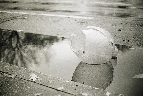 This photograph by akkleis seems like the perfect reflection of the weekend — a lonely puddle and a windblown, broken streetlamp. The texture of the film gives it a more gritty street feel. EXIF.