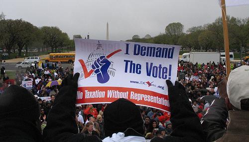 The loss on the Hill notwithstanding, the year saw a new and encouraging expansion of citizen activism on the issue. Early on, residents and voting rights supporters fanned out in Congress to lobby members of the House. On April 16, some 5,000 souls braved frigid weather for the Voting Rights March, finally putting a face to the issue. And thanks to the determined leadership of D.C. Vote, a number of new and creative means to push the issue were kicked off, including hounding the senators that voted against the legislation, YouTube questions for the Republican presidential candidates, a proposal for a large billboard outside the Wilson Building tallying the amount of federal taxes District residents have paid, and an anniversary re-enactment of the Boston Tea Party. We even jumped in the action, participating in a panel discussion on D.C. voting rights at the YearlyKos Convention in Chicago.