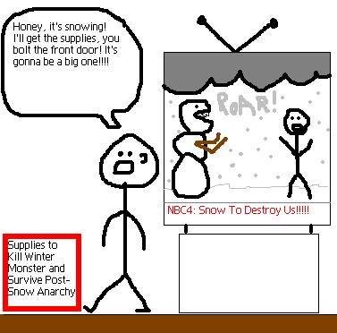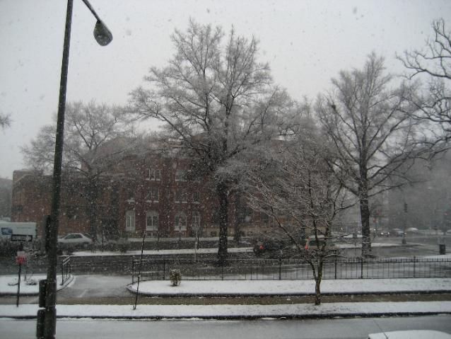 We haven’t had much snow so far this winter, so we thought it was high time to trot out everyone’s favorite MS Paint stick figure, Davy DCist. The snowy view from DCist HQ is below — it’s finally starting to stick. You can check live traffic cam shots to see if the snow is sticking where you are over here. Look for the snow to change to a mix of sleet and rain after 3 p.m., but in the meantime, enjoy!