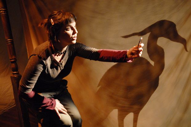 Kimberly Gilbert receives a strange visitation in Woolly Mammoth’s The K of D. Photo by Stan Barouh.