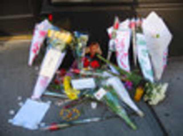 Photograph of memorial outside Heath Ledger’s NYC apartment