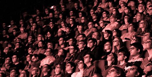 This photo is so awesome, from the panoramic view, to the pink tint, to the cloned expressions on everyone’s faces. The only thing that would make this perfect is if they were all screaming and holding their hands out at the invisible 3D monster reaching out to get them. Flickr user parikha49 took this at a screening of U2 3D at the Smithsonian Natural History Museum last weekend.