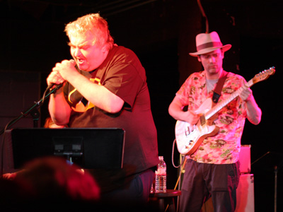 Setting aside the considerable myth of Daniel Johnston, I can say that Daniel Johnston the man was very much present at the Black Cat on Saturday night, turning in a passionate, affecting set that touched on many of his catalog’s highlights. Flipping through his trademark manila folder full of song lyrics, Johnston seemed at once both crippled by anxiety and completely at ease. Fists balled at his sides, he rarely made eye contact with the audience, choosing instead to focus his attention on the microphone in front of him. He did, however, manage to crack a few well-received jokes in between songs. “Alright Washington D.C., how’s the president been?” he quipped at the end of opening number, “Mean Girls Give Pleasure”, immediately adding that he doesn’t pay much attention to politics. “Didn’t the last two presidents look about the same?”