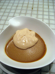 The butterscotch pot de creme with toast foam is one of those desserts. At first the toast foam sounds like one of those molecular gastronomic inventions – more air than substance. In this dessert, the foam is a salty-sweet mousse that counterpoints the buttery, dense and creamy sweetness of the pot de creme. If you love the combination of salty and sweet, you will adore this dessert.