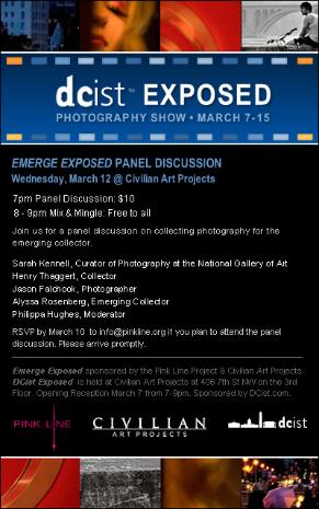 We highly encourage everyone to stop by after the panel is over for a free, open reception starting at 8 p.m. Many of the artists will be there and all the work is on view. If you’re interested in purchasing a photo (to start your very own collection?), please find me at the reception tonight or email heather [at] dcist.com.