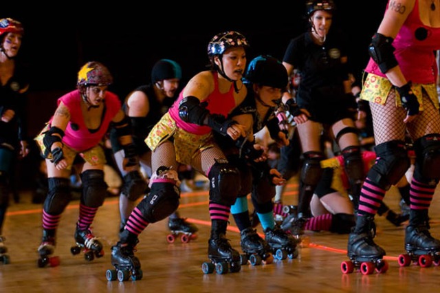 Maybe it’s the motto (“With liberty and justice to brawl!”); maybe the it’s the custom of each player being known only by her self-selected derby name (Condoleezza Slice, Guantanamo Babe, Apocalypse Meow, and Demonica Lewinsky being only a few of the inspired noms de derbierre); maybe it’s the sad dearth of girl-on-girl violence in other forms of entertainment. Whatever the reason, Roller Derby is catching.