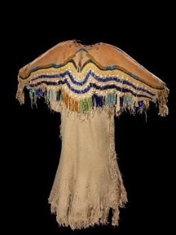 For example, the various cuts of the dresses can point to a tribe’s way of life. The side-fold dress was easier to walk in and used by more agricultural tribes, while the two- and three-hide dresses had skirts which were more practical for mobile tribes who spent more time on horseback.
