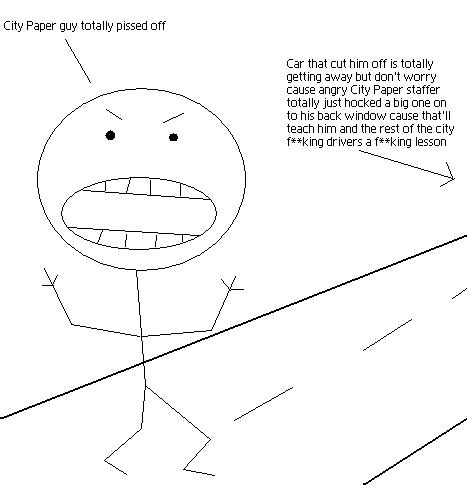 Since we didn’t witness it ourselves, the above is a representation of the City Paper’s Matthew Borlik’s impassioned and rageful rant against one — or all — of the District’s drivers. A key passage (though don’t let it stop you from reading the whole thing):