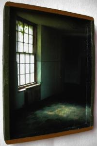 A highlight of the show are the shadow boxes by Mark Planisek (pictured). Small collaged boxes of various shapes and depths contain photographs of different settings of windows, hallways and doorways. Each photograph is from the building where Planisek’s old studio was located. Determined to document the building, Planisek has captured light at its most dramatic times of the day, showing off the harsh angles and shadows that he found. Some of the scenes extend beyond the center of their box and cover the outside plains, too, blurring where the piece starts and ends. The overhang of the boxes create their own shadows that interact with the shadows from the photographs and as you move, the view shifts and the shadows play across the work, constantly changing how you experience it. It is a simple concept executed beautifully.