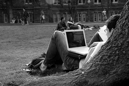 While the month of April means taxes to some, it means nice weather to others. Today’s photo shows us just one of the great things offered by this city, a good amount of green space to spread out and enjoy the nice weather. Flickr contributor Pianoman75 caught a Georgetown University student taking advantage of it all to get some work done. Even if you have to work at least you can enjoy a little sun. EXIF data.