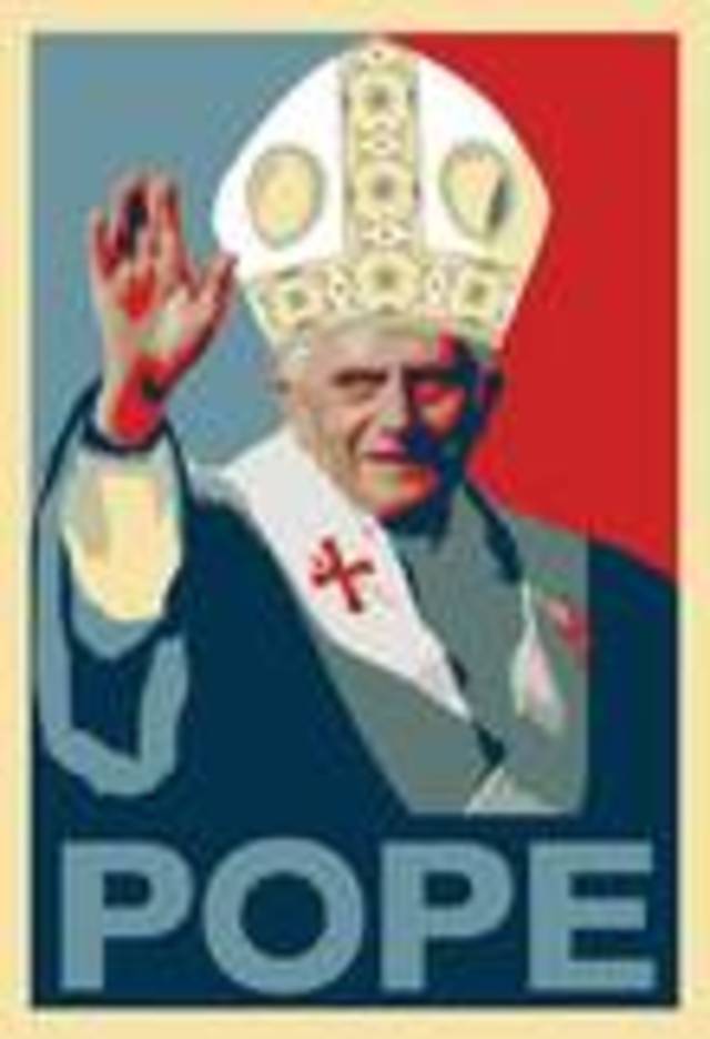 Did you love Shepard Fairey’s Obama posters? Artist Michael Ian Weinfeld has created this limited edition copycat “POPE” print of Benedict XVI in honor of the pontiff’s visit to the United States this week. It’s available for purchase for $99. (via ANIMAL).
