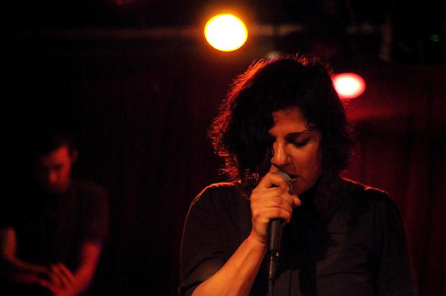 It makes sense that Garland of Hours opened up for Evangelista last night at the Velvet Lounge. The last time Carla Bozulich came to town, that time in support of a record called Evangelista rather than fronting a band by that name, her opener at the Warehouse Next Door was Anni Rossi, a violist whose frenetic attack on the instrument gave the impression of a full band even though she was the only one on stage. Cellist Amy Domingues of Three Stars alums Garland of Hours was similarly alone up there—Garland is sometimes a band, sometimes just Domingues—yet had the illusion of more people via a multi track looper that filled in as rhythm section while Domingues held down the singing and the melodic lines. Despite some onstage disagreements between her and her electronic accompanist—the looper was acting a little loopy early in the set—her intimate chamber pop, which straddles the line between modern and medieval with its modal scales and madrigalesque storytelling, provided a fitting contrast between the noisy acts that bookended her.