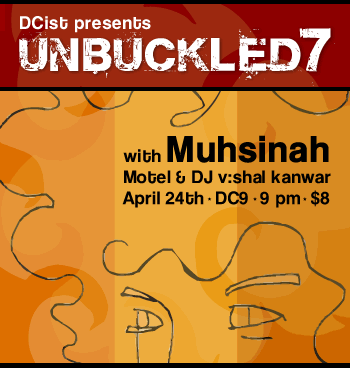 >> There might be other shows you could go to tonight, but the only show you absolutely must go to is DCist’s Unbuckled 7, featuring Muhsinah (***), Motel and DJ v:shal kanwar, all for only $8 at DC9. Doors are at 9 p.m., and stay tuned for special previews of the bands this week.