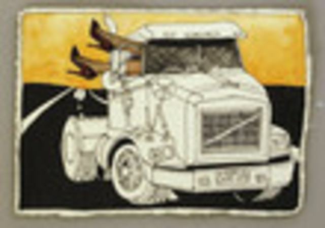 This week, DCist toured the studios with resident artist Lisa Marie Thalhammer to give you a sneak peak. Thalhammer, who has exhibited at Transformer, G Fine Arts, ArtDC and PULSE New York, occupies one of the few live/work spaces in the building: a colorful, funky loft space filled to the rim with the artwork of her and her two studio mates. Thalhammer’s work, including the fun image from the Lot Lizard series pictured left, explores ideas of gender, identity and power. If you don’t think you can afford an original, Thalhammer will also have some t-shirts for sale, so you can flaunt her funky heroines all over town.