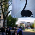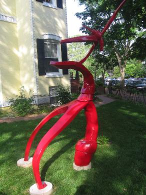 In the inaugural Foggy Bottom Outdoor Sculpture Exhibit, the Foggy Bottom Association has installed twelve sculptures within the gardens and front yards of some of the neighborhood’s colorful homes. They are all contemporary works by D.C. metro area artists, and they contrast nicely with the historic homes, some of which date back to Foggy Bottom’s 19th century working class days.