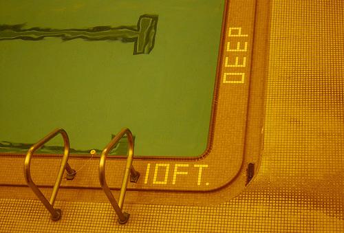 Since it’s not an outdoor pool, I suppose this photo by Pixilista can’t exactly scream summer, but it does get us in the mood for it nonetheless. The greenish yellow tones of the deep end let you almost smell the chlorine coming out of the water at the YMCA. EXIF.