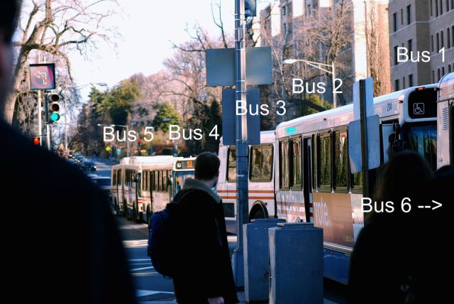 Among Catoe’s priorities for Metrobus: hiring more bus supervisors and giving them dispatcher authority that would allow them to make alterations to bus schedules when traffic conditions call for such action. Having that sort of power could help supervisors prevent what we’ve nicknamed “bunchabuses,”, the phenomenon of having two or more buses bunched together, traveling down the same route at the same time. For a classic example, see Flickr user cstein96‘s photo above, featuring a whopping six S buses approaching 16th and U at the same time, from back in February.