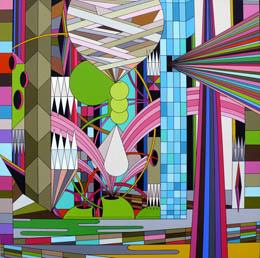 >> Afterwards, head over to Irvine Contemporary for a look at the work of James Marshall (a.k.a. Dalek), pictured above, another street artist who made his way into the galleries. Marshall’s highly graphic, brightly colored work in Overweight is perhaps the fusion of modern day graffiti art with old school color field work. Also check out the on-site painting created with Tim Conlon. See them at the reception, 6 to 8 p.m.
