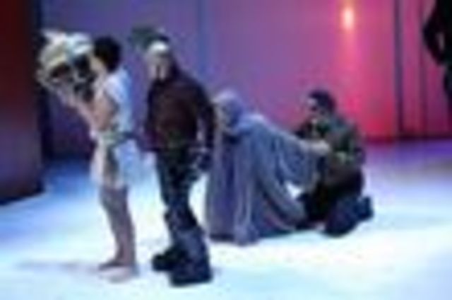 Theater J‘s David In Shadow And Light seems to want to be a lot of things at once. Profound meditation on an epic character. Unusual amalgam of world music sounds and atonal themes. Pop-culture savvy, Joseph and the Amazing Technicolor Dreamcoat-esque musical referencing the WWE in the same breath as scripture. Postmodern, “in-on-the-joke” type of piece that directly addresses the audience and weaves the future with past.