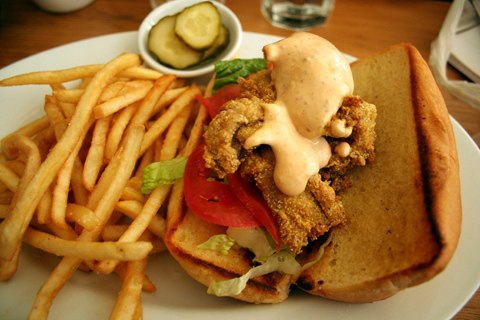 The warm weather has put us in the mood for seafood. It hasn’t quite hit prime blue crab season yet, so we’ve been looking at other ways to get our fix. Fortunately, a trip to Tackle Box did the trick. Their big, meaty fried oysters must be credited to Chef Rob Bechtold, a Louisiana native. And even though it is not a month with an ‘r’, these sustainable beauties were a marvel. Instead of the delicate little Kumamotos, Malapeques and other fancy oysters, these oysters were hefty suckers meant to carry the slightly spicy, delicious po’ boy-style breading. Topping these off with a little remoulade or lemon garlic aioli really does the trick. The mind boggles at the opportunity to pack these babies into some crusty French bread.