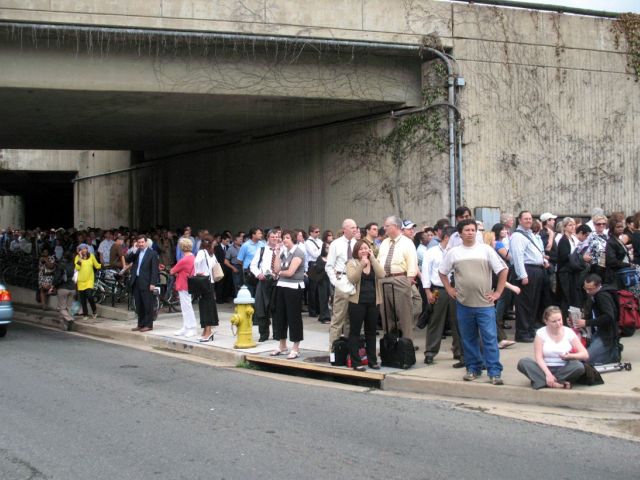 Check out these photos taken at 5:30 p.m. at the East Falls Church Metro station, where downed power lines have shut down Orange line travel in both directions. Metro has finally issued a full press release on what’s happening down there. Based on these images, if you’re heading out on the Orange line, our best advice would be to stay in the city tonight until much, much later, if not crash on a friend’s couch.
