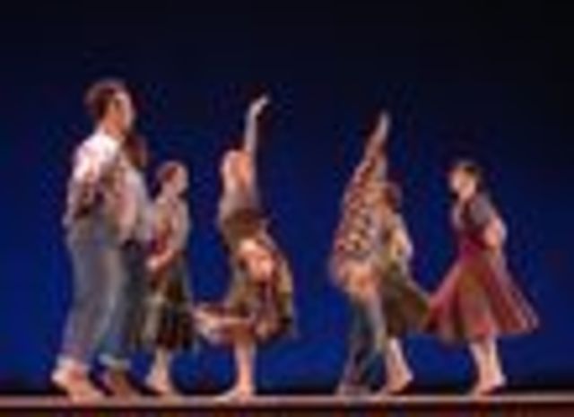 With long horizontal strides, wide smiles that reached the upper tier of Strathmore’s grand 2,000-seat concert hall, and arms fully outstretched at an angle to either side, the CityDance Ensemble began The Songwriters, the final performance of their 2007-2008 season. Farmer boys were clad in jeans and flannel shirts; farmers’ daughters sported flowing frocks. Moving briskly in rows from stage right to stage left, they resembled the moving targets of one of those amusement park midway games in their passing uniformity.