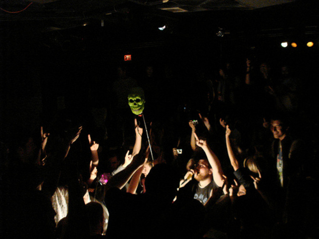 With the main stage space about half full, the show seemed to draw a younger crowd with lots of Xs on hands. We spoke to Kim Schifino of Matt and Kim during a set break, and she said the artists had mostly worked with 22-year old tour organizer Sean Carlson before, and due to various factors, were late to a show the day before in Baltimore. Thankfully the Black Cat show went on with a hitch, with Schifino saying they found oil for the bus at a Chinese restaurant.