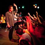 The F Yeah Tour began as a music, comedy, and arts fest held in L.A. every summer, and this year it’s going on tour, on a bus run by vegetable oil. Seven bands, mostly sharing a cut-and-paste DIY sensibility, played at the Black Cat last night: DCist fave Dan Deacon, Matt and Kim, The Death Set, Team Robespierre, Monotonix, Mannequin Men, and comedian Josh Fadem. The event also featured a table with voter registration, information about Burma, zines and graphic novels. Before it was over, the crowd was carrying drummers and drums, running around in circles, and moving through a snake made out of their outstretched arms.