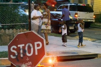 Residents watch the police checkpoint in D.C.’s Trinidad neighborhood on Saturday, June 7, 2008. (AP Photo/Jose Luis Magana) |