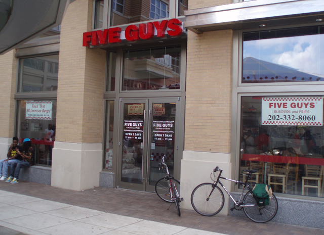 Folks in Columbia Heights salivating for a burger and cajun fries can finally step into a Five Guys today. Located at the corner of 14th and Irving streets, the shop was already bustling with a hungry lunch-time crowd. Now, anyone exiting the west Columbia Heights Metro — surrounded on three sides with Potbelly’s, Pete’s Apizza and Five Guys — will be hard-pressed to not grab something to eat