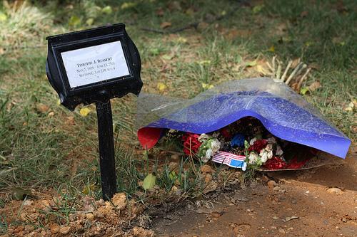 Tim Russert’s unexpected death touched many of us here in Washington. Flickr user Mr. T in DC captured this reverent shot of Russert’s final resting place in Rock Creek Cemetery. The temporary marker and wilted flowers are small and inconsequential in comparison to the media giant’s life. EXIF.