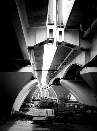Okay, so this is the second “under bridge” PotD this week, but this image by Flickr user volcanojw was too good to pass up. The architecture of the Wilson Bridge creates bold lines as the construction crew works underneath. She took a landscape version that emphasizes the great curves of the pillars, but I like this one for its strong path to a vanishing point.