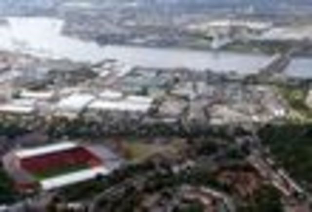 Photo of Charlton Athletic FC and the Thames Barrier by Dean Nicholas.