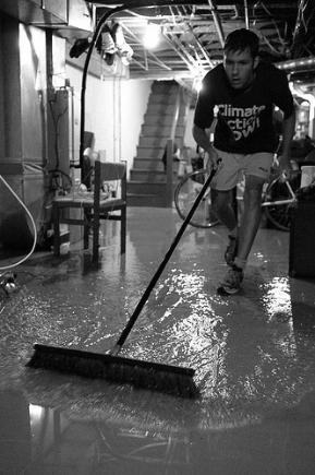 Should we talk about the weather? Flickr user brandonwu captures an unfortunate soul dealing with a flooded basement resulting from last night’s storm. Does the sweeper wonder if the storm could have been prevented if the global emission decline curve had a slightly steeper slope? Or maybe he just found a cool T-shirt. EXIF.