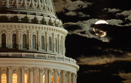 A big group of Flickr contributors went out to capture images of last night’s Harvest moon. It was difficult to choose just one, but today’s POTD from Flickr user erin_m is a striking example, with the bright sphere hovering over the Capitol building. I see the moon behind the shadow of the cloud, ready to pounce. We’ll see if we can’t post some more Harvest moon shots later on.