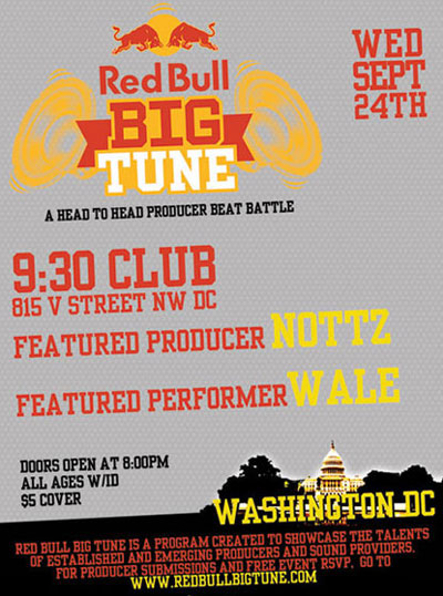 >> Red Bull’s Big Tune is a head to head producer competition with 12 beatmakers vying to be one of two from D.C. to advance to the championship round in New York City based on audience input. The battle will take place at the 9:30 Club and feature guest spots from local up-and-comer Wale and Virginia-based producer Nottz. $5, 8 p.m.