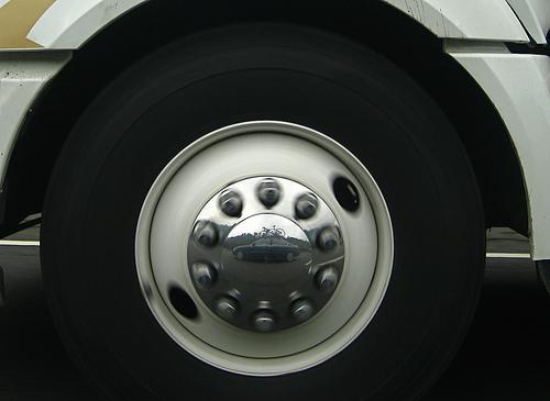 We like the simple and circular composition of this tire shot by Flickr user volcanojw. Notice how the reflection of a car, complete with bike rack, is centered and clear in the shiny hub cap. EXIF.
