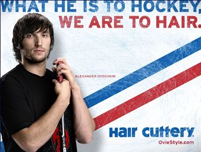 Vienna based Hair Cuttery finally launched its long-awaited ad campaign featuring Alex Ovechkin. Ovie’s simple hairstyle and jack-o-lantern smile are now appearing on billboards, buses and a snazzy web site. It seems like only yesterday we read the millionth article about how Ovechkin isn’t as pretty as Sidney Crosby.